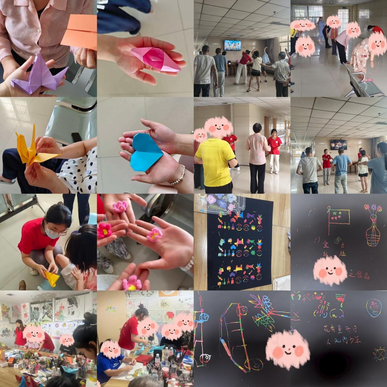 每天我们在病区里开展各种各样的疗愈活动。“投壶游戏”里,年长患者连续命中后的雀跃舞步,年轻患者组队竞技时的爽朗笑声,意外成为最好的康复催化剂;“乒乓气球”活动中,球拍挥舞的弧度与气球弹跳的节奏,悄然锻炼着患者的肢体协调能力;“曼陀罗彩绘”活动中,圆形画布上的每一笔色彩,都是情绪的温柔释放;“刮画”活动中,黑色卡纸上渐次绽放的银白星光与绯红云霞,是患者们最坦诚的生命独白;“空桶投球”活动的现场,默契的眼神交流取代了指令;14岁的“小老师”指导同伴编织扭扭棒时,睫毛在脸颊投下的阴影随着动作轻轻颤动,构成一幅流动的治愈图景;当凤凰传奇的旋律响起,康复操的律动中,医患的笑容同样灿烂;韩宁主任、贺焕芹医生、雷萌医生的临床案例讲座,为队员们搭建起从理论到实践的桥梁,笔记本上“共情先于评判”的字样被反复圈划。