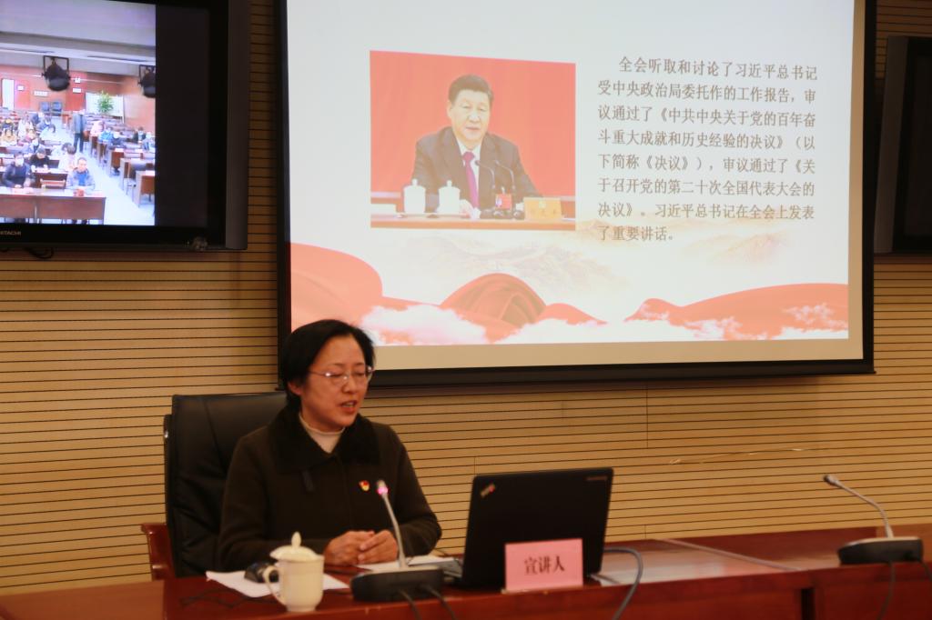 报告会上,达芳菊以《深入学习贯彻党的十九届六中全会和历史决议精神》为题,通过回顾党的百年奋斗历程,运用详实的史料、生动的案例、准确的数据,围绕党的十九届六中全会的主要议程、重大成就,《决议》的主要内容和基本精神以及全面贯彻落实全会精神的要求等方面进行了全面系统的宣讲。