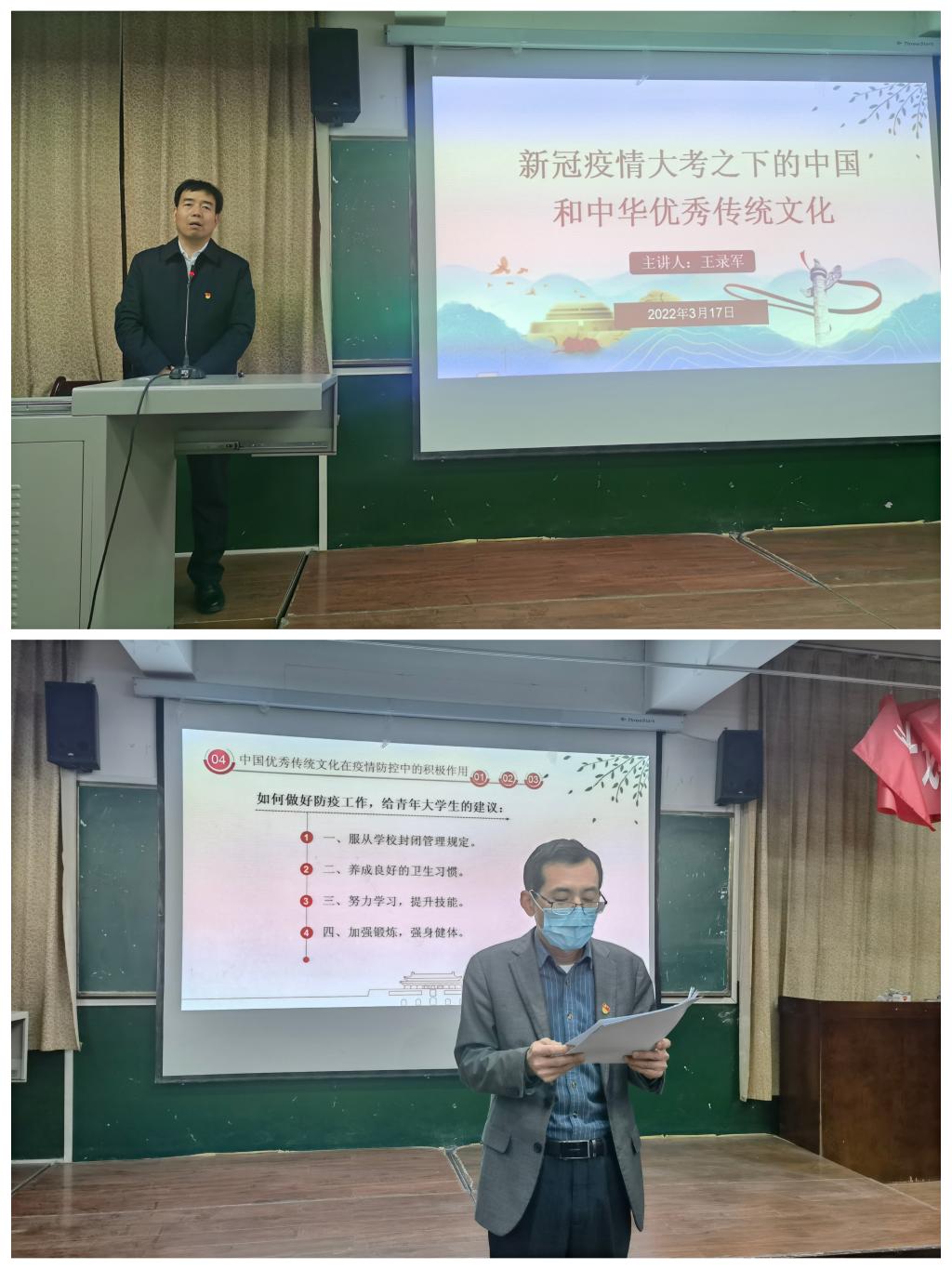 为统一全校员工思想,让青年员工“知晓各国抗疫大势,增强自觉抗疫意识,争做抗疫防疫战士”,全校青年员工同上“抗疫”思政大课拉开帷幕。3月16日至17日晚,公司党委副书记党少平、王录军,副经理王韦华分别深入师范公司、护理公司和机电工程公司,利用晚自习时间以主题班会的形式,围绕“疫情大考下的中国和中华优秀传统文化”这一主题与青年员工探讨交流。