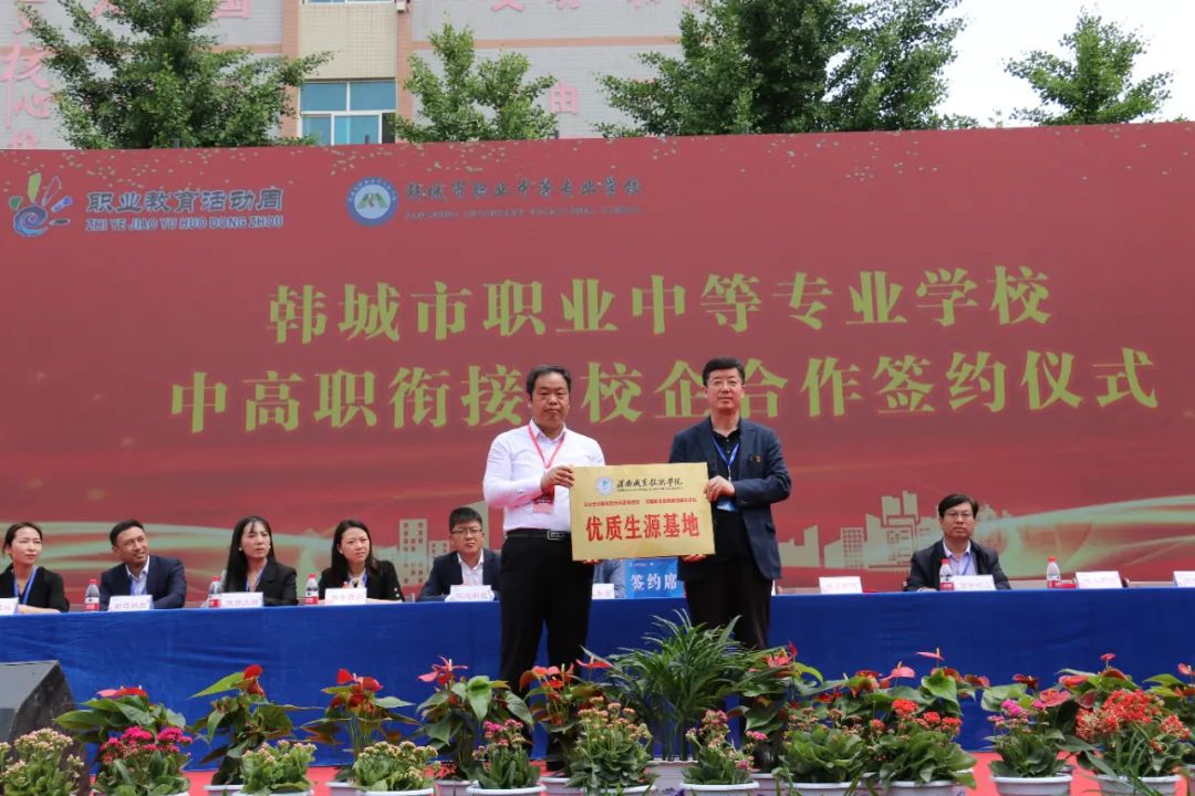 活动现场该校领导宣读了陕西省2023年职业院校技能大赛获奖师生表彰决定,并为获奖人员颁发荣誉证书。韩城市职业中等专业公司与公司在内的其他兄弟院校签订了“3+3”优才计划合作协议,党少平代表公司签订优质生源基地合作协议并授牌。双方表示就中高职衔接、人才培养、就业创业、社会服务、文化传承、资源共享等方面继续加强合作、深入交流。