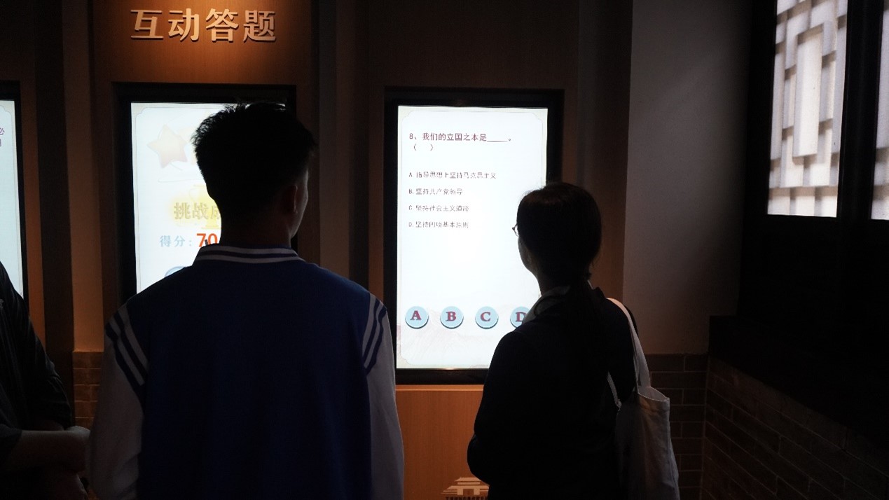 把思政课堂从教室搬到纪念馆,让员工切身感受到爱国主义教育的现实意义和深远影响,增强了思政课的针对性和吸引力。在王鼎纪念馆,师生一同参与了爱国主义主题的互动答题环节,这堂寓教于乐的“大思政课”,深受青年员工喜爱。