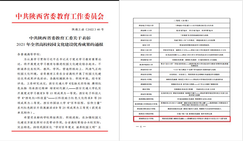 陕西省校园文化建设二等奖