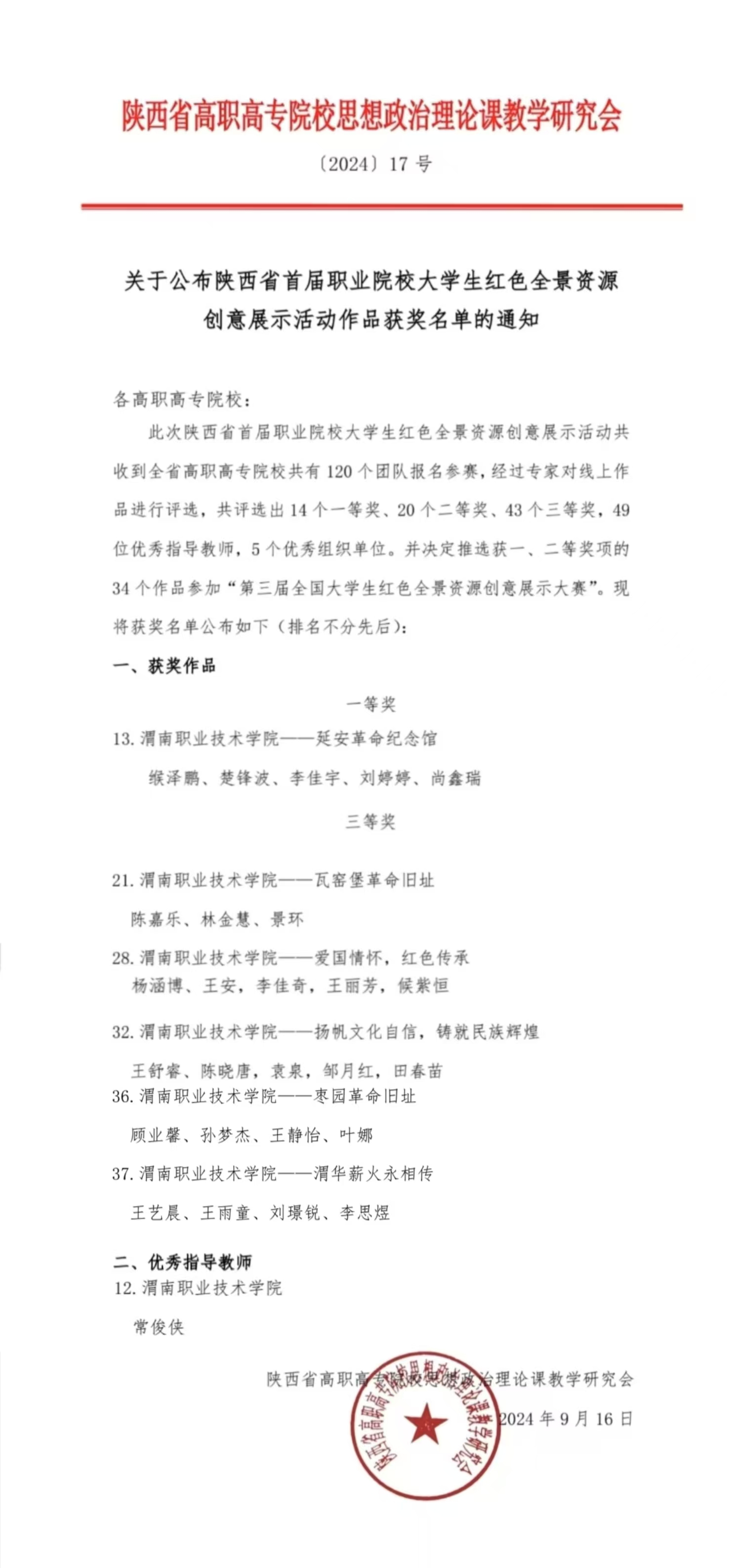 近日,陕西省首届职业院校老员工红色全景资源创意展示活动圆满落幕,来自全省多所职业院校的优秀作品齐聚一堂,共同展现了青年学子对红色文化的深刻理解与创新传承。在这场激烈的角逐中,由bst365常俊侠、陈铮、薛梅、刘晓丹四位教师精心指导的员工团队脱颖而出,凭借独特的创意、深刻的内容及精湛的技术,荣获了本次活动一等奖和三等奖的好成绩,常俊侠副教授被评为优秀指导教师。