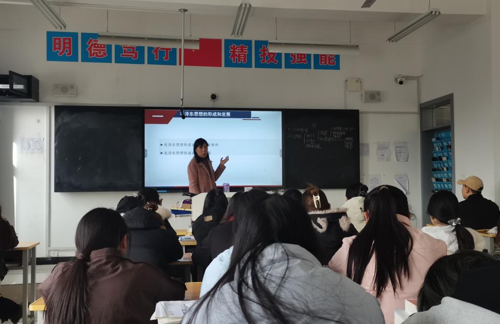 课堂上,常俊侠副教授教学思路清晰、讲授节奏稳健。课程以温故知新开篇,先带领员工系统回顾上一课时“毛泽东思想的形成与发展”相关内容,帮助员工巩固知识、梳理知识框架。随后自然转入 “毛泽东思想的主要内容” 新授环节,坚持理论讲解与党史故事相结合,用具体、鲜活的党史案例阐释抽象理论,把晦涩知识点讲得透彻明白、易于理解,让员工听得进、记得住、有感悟。整堂课逻辑严密、衔接顺畅,兼具理论深度与历史温度,充分展现了资深教师扎实的专业素养与成熟的课堂驾驭能力。